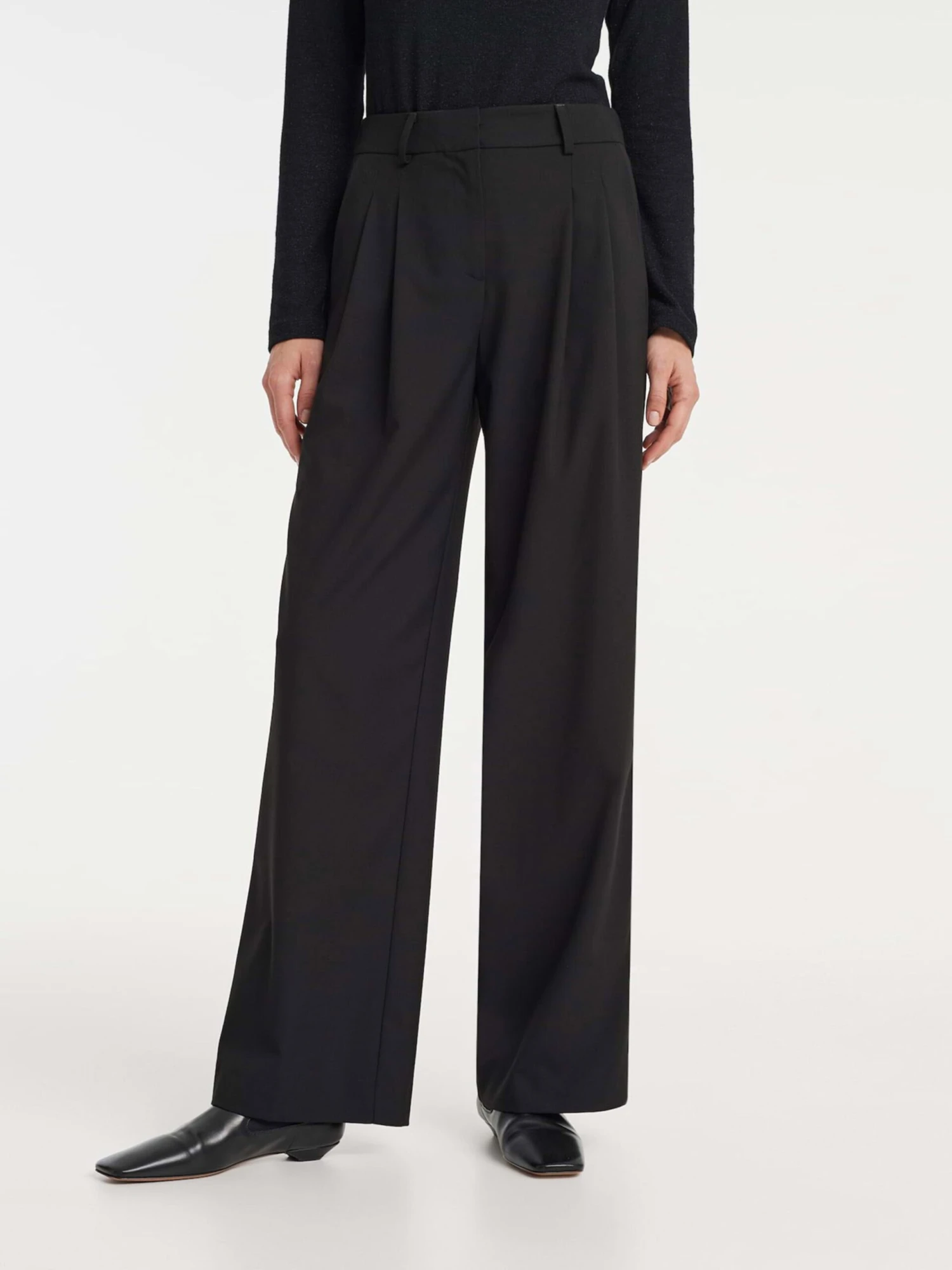 OPUS Bandplooibroeken Wide Leg Bandplooibroek Melpa Dames Zwart
