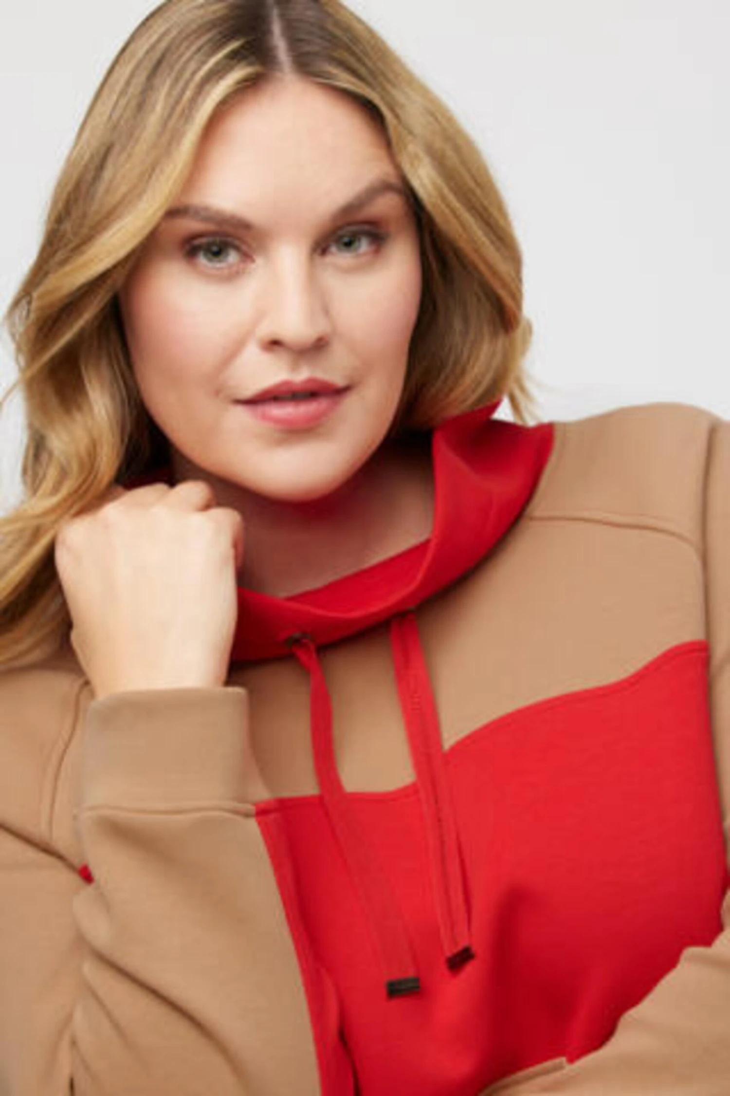 Ulla Popken Hoodies Sweatshirt Dames Lichtbruin / Rood